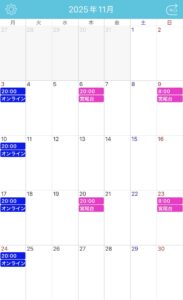 | 料金 | 4回/3,000yen プラス1,000yenでオンライン受け放題 |