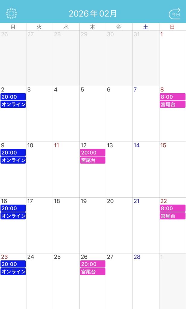 2月レッスンカレンダー
