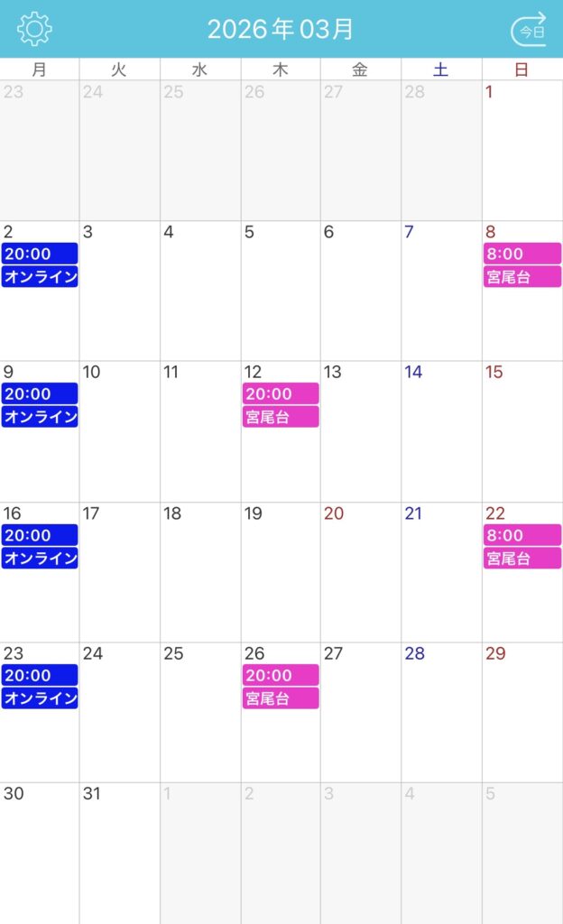 3月レッスンカレンダー